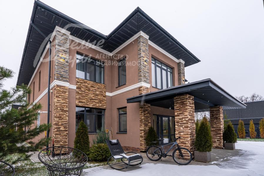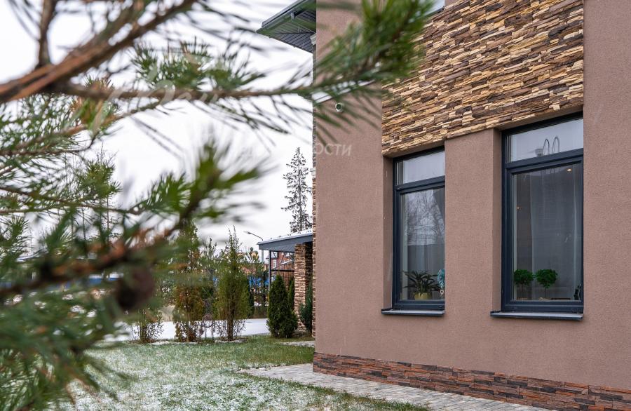 Описание внутренней отделки: выполнена отделка в современном стиле: на стенах обои, краска; на полу немецкий ламинат, в санузлах и на лестнице - керамогранит. Лестница монолитная стандартной ширины. Потолок обшит гипсокартоном. Радиаторы на всех этажах. Тёплый пол Stout на 1 этаже и во всех санузлах. Межкомнатные двери МДФ.
