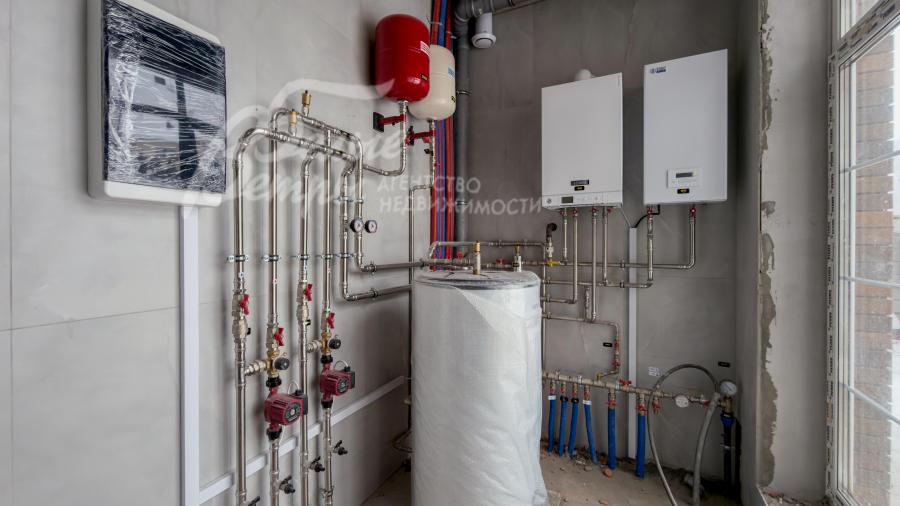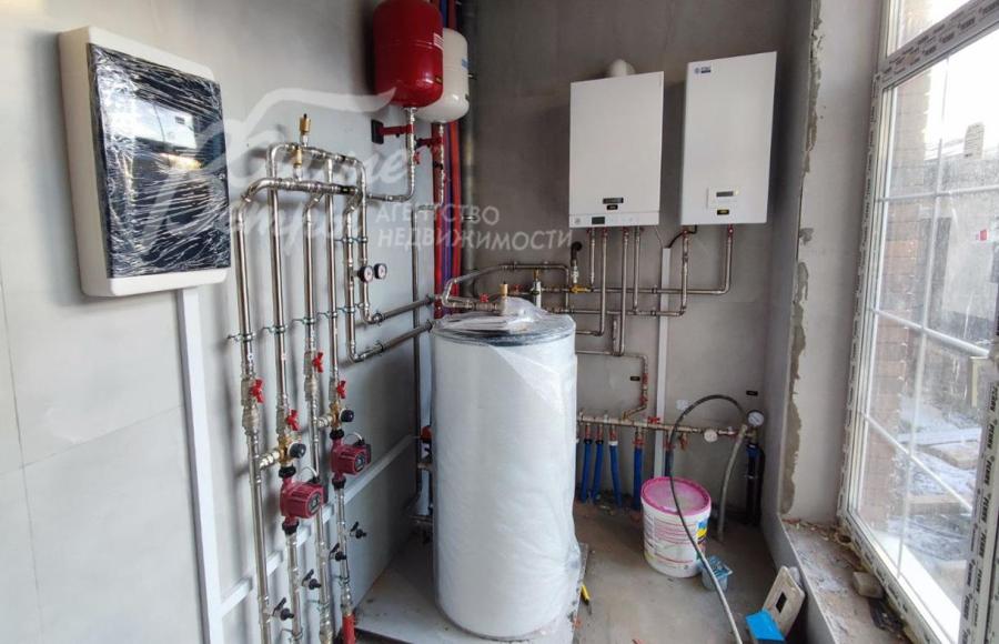 Инженерное обеспечение: Газовый котёл и резервный электрический, бойлер косвенного нагрева на 200 литров и система водоподготовки. Система отопления, водяной тёплый пол из шитого полиэтилена Stout, разводка всех коммуникаций до точек